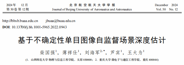 这一研究成果以“基于不确定性单目图像自监督场景深度估计”为题发表在北京航空航天大学学报[2024,50(12)]。云顶Casino 柴国强副教授为第一作者,重庆大学刘海军副教授为通讯作者。该工作得到了国家自然科学基金、山西省基础研究计划等项目的资助。