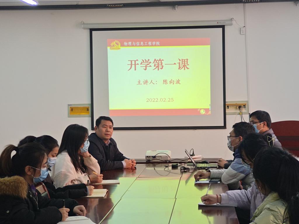 2月25日下午3:30,院党委书记陈向波在实验楼S202会议室为物理学B支部全体党员讲授2022年春季学期“开学第一课”。会议由物理学B支部书记、物理实验室主任程留永主持。