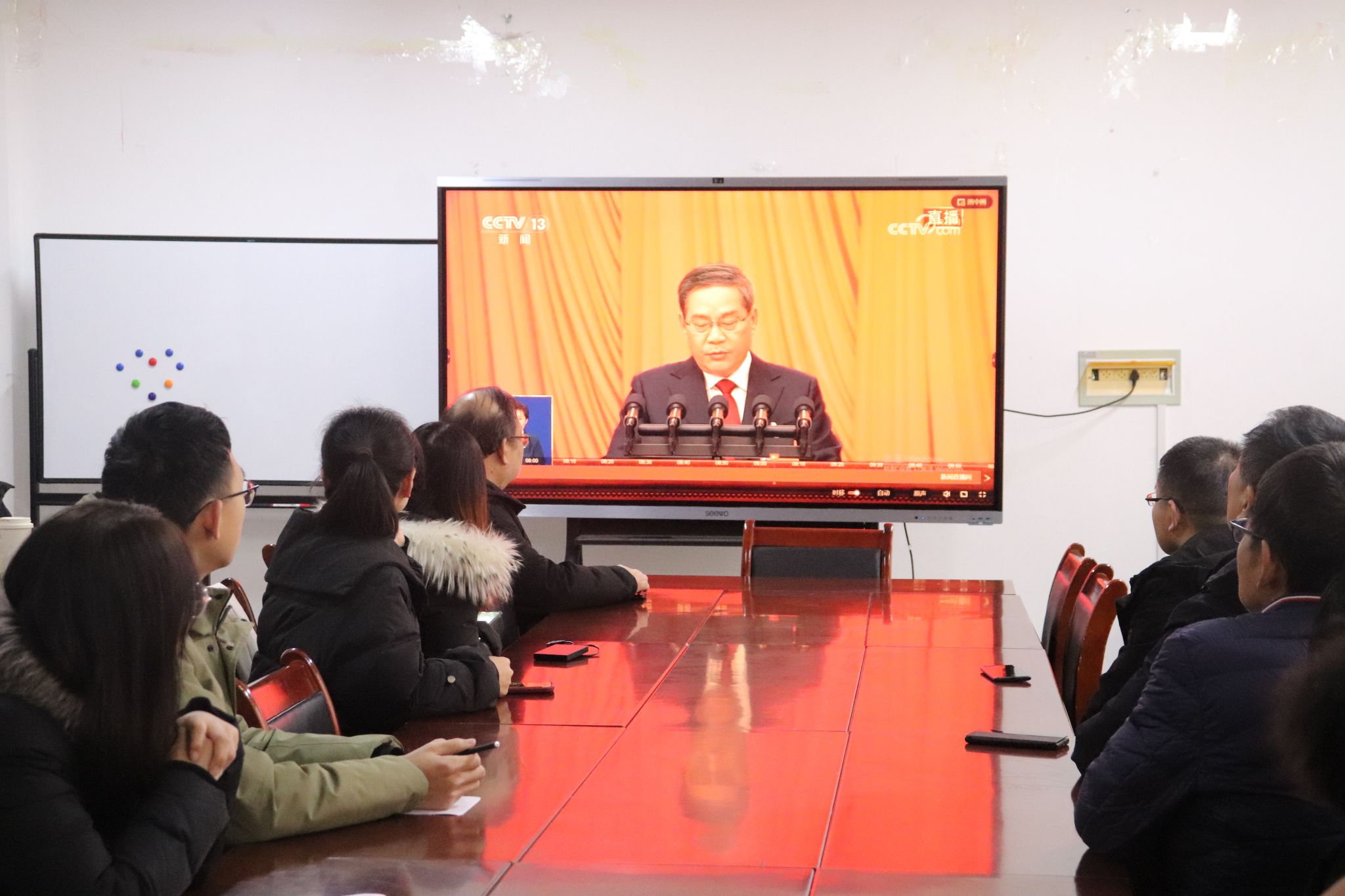 2024年3月5日9时,十四届全国人大二次会议开幕会在北京人民大会堂举行。云顶Casino 组织广大师生在南区S202会议室集体观看了开幕会。