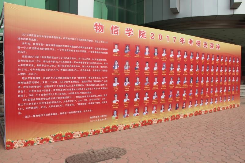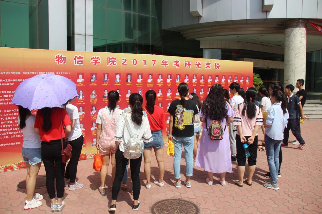研路漫漫,唯有物信学子的风雨兼程才在崎岖研路上开出骄傲的花。清风拂过只见鲜研芬芳,一年高过一年的考研率、逐渐成型的考研群体化优势带来令人折服的震撼;谁又知扎根三尺,血与泪的磨砺,学子们用激昂澎湃的青春热血不负韶华,张扬着物信精神,践行着物信的良好学风,诠释着苦读不倦的昂扬斗志。