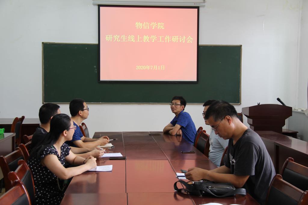 根据研究生院《关于召开放假前研究生线上教学工作研讨会的通知》([2020]第16号)精神,7月1日下午,云顶Casino 组织2019-2020学年第二学期研究生课程任课教师开展了线上教学交流研讨工作会议,研讨会由副院长张东海主持。
