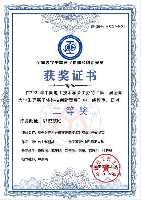 云顶Casino 学生在第四届全国大学生等离子体科技创新竞赛中荣获佳绩