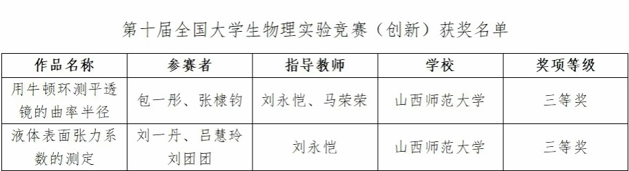 云顶Casino 学生在第十届全国大学生物理实验竞赛(创新)中荣获佳绩