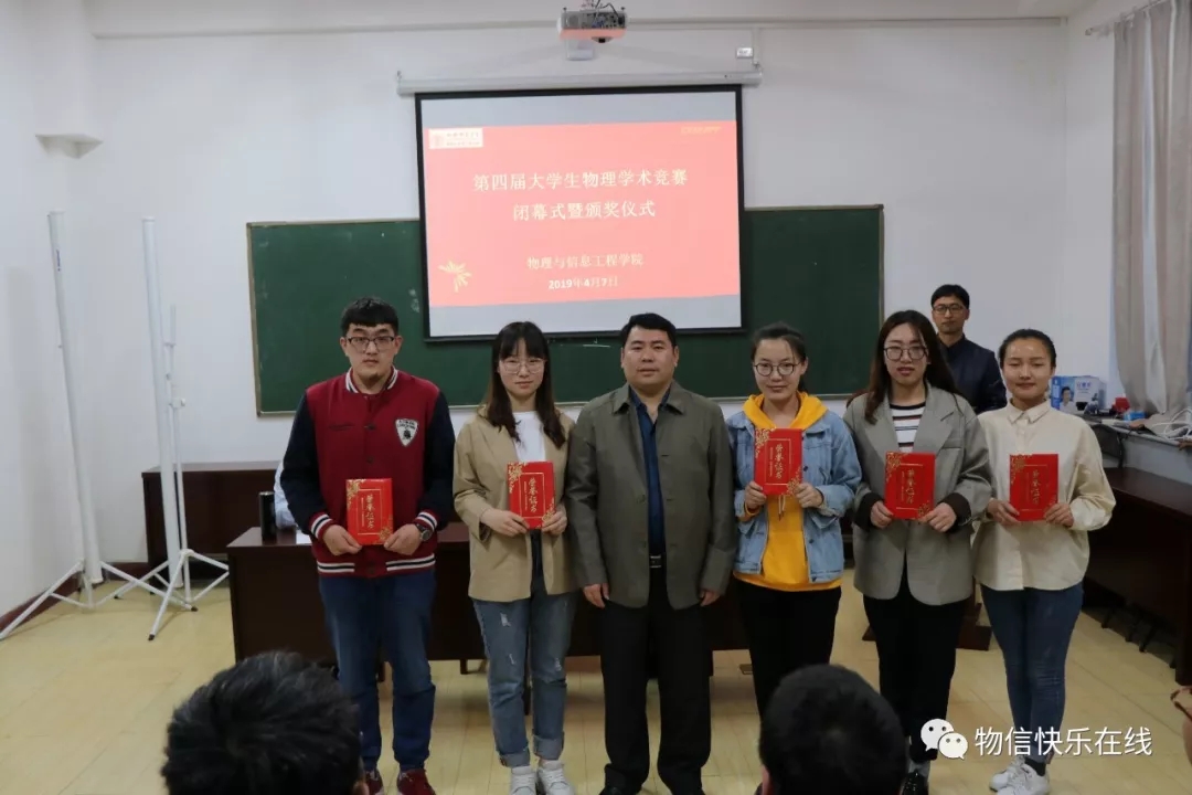 为选拔优秀人才,备战即将到来的山西省第四届物理学术竞赛,云顶Casino 于2019年4月7日下午在四号楼二层多功能会议室举办第四届山西省大学生物理学术竞赛选拔赛暨云顶Casino亚洲官方入口-云顶娱乐官网下载 第四届大学生物理学术竞赛决赛。程留永、苏晓强、王会杰、赵承祥、穆林平、崔会芳六位竞赛指导教师作为比赛评委。院党委书记陈向波、院党委副书记王玮、副院长侯俊华出席颁奖仪式并为获奖选手颁发荣誉证书。