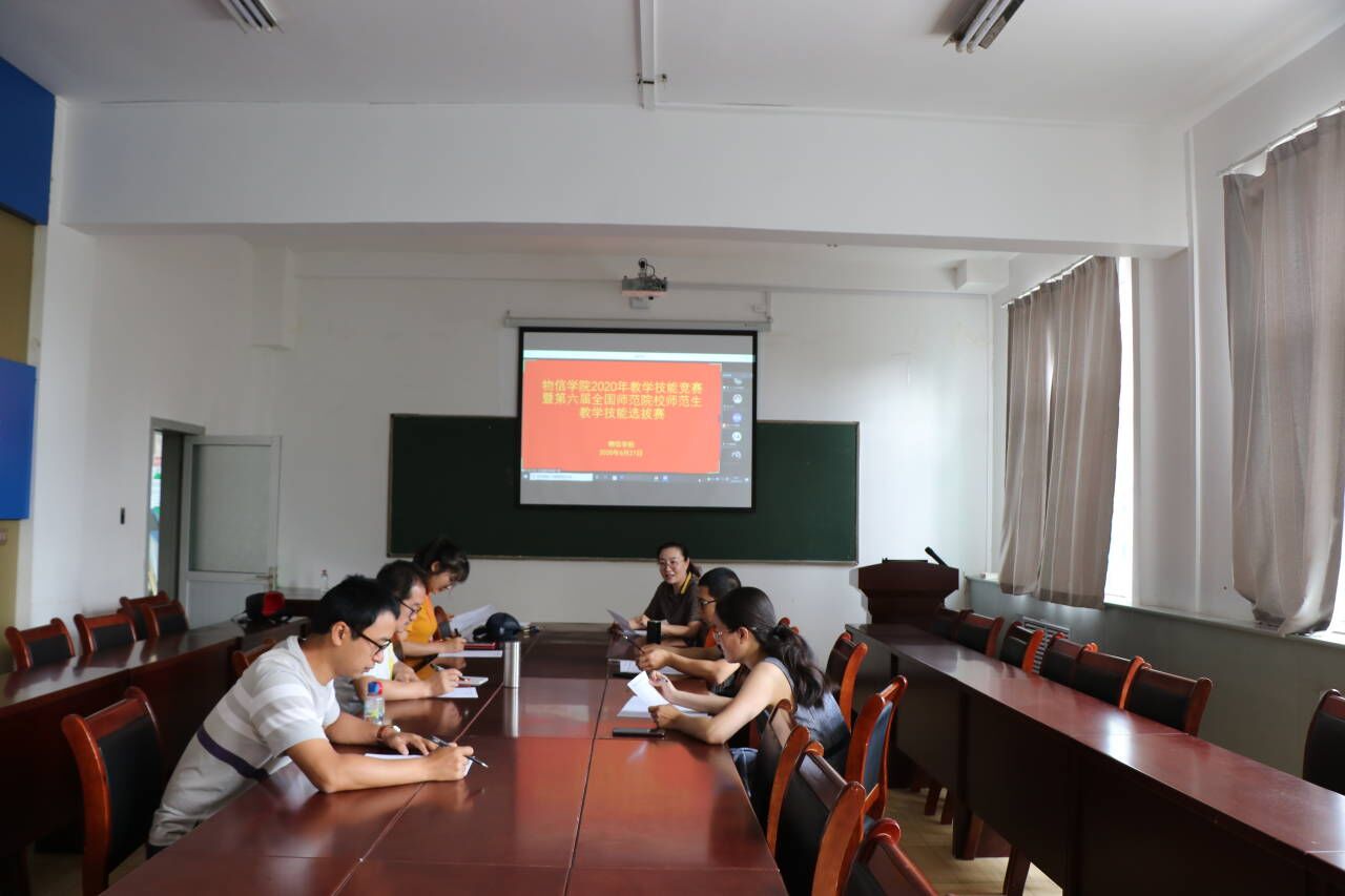 为提升云顶Casino 师范生专业技能和教学能力水平,达到以赛促学、以赛促练的目的, 6月27日,云顶Casino 2020年师范生教学技能竞赛暨第六届全国师范院校师范生教学技能竞赛选拔赛在云顶Casino 多功能会议室开赛,选手们以线上视频授课的方式参加了比赛。院党委副书记王玮、副院长侯俊华教授、学生教学技能竞赛类总指导张中才教授、学生教学技能竞赛类指导教师穆林平副教授、潘俊星副教授、程留永副教授、院团委负责人马丽娜老师受邀担任本次竞赛的评委。活动由院团委学生会学习部承办。