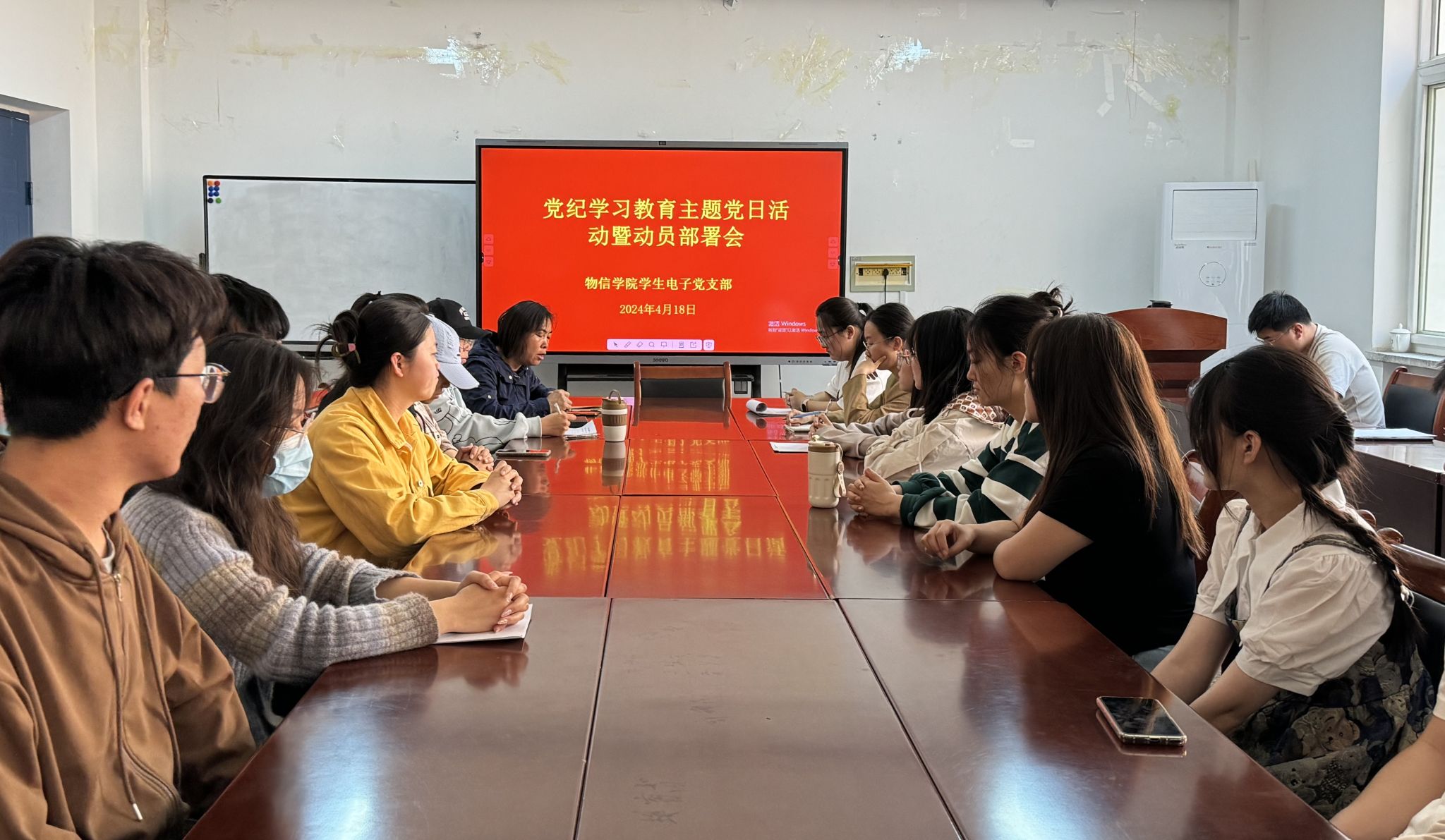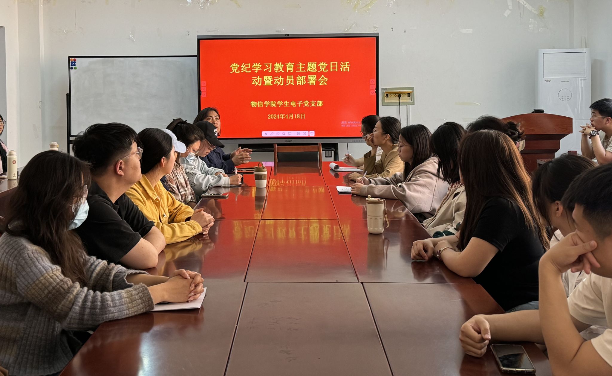 4月18日,云顶Casino 学生电子党支部在实验楼s202开展了“强化纪律意识,培养优良作风”主题党日活动暨党纪学习教育动员部署会。支部全体党员参加了活动。活动由支部书记卫永霞主持。