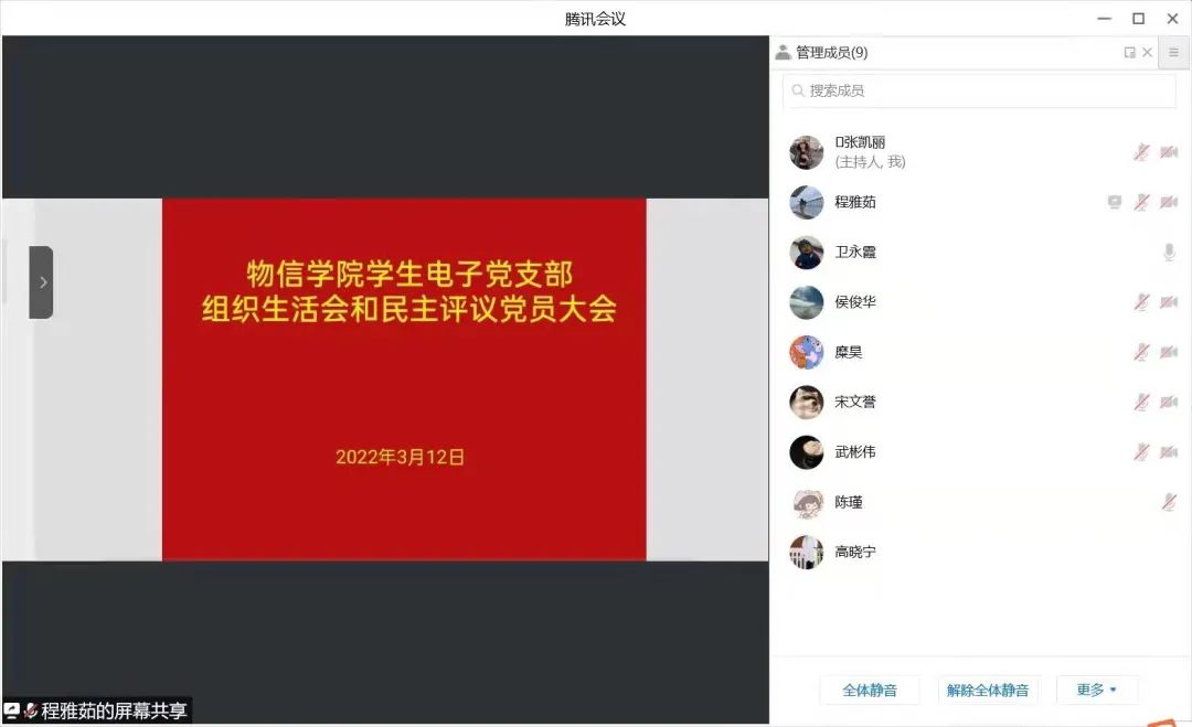 3月12日晚上,云顶Casino 学生电子党支部线上召开组织生活会和民主评议党员大会,院党委委员、副院长侯俊华出席了本次会议,支部支委成员和党小组负责人参加会议,会议由支部书记卫永霞主持。