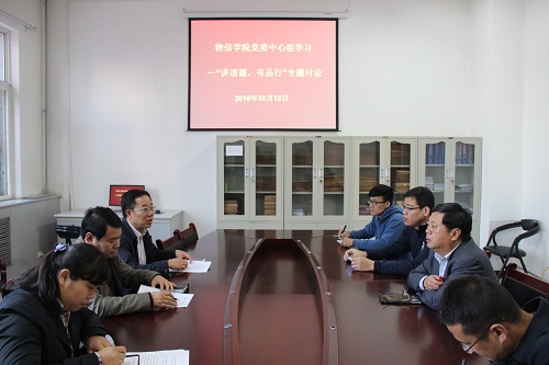 党委中心组在04106会议室开展第三次“四讲四有”专题学习讨论——“讲道德,有品行”学习讨论活动。院党委书记张争宽、院长杨虎、副书记陈向波、副院长张东海、苗向阳、教工第二党支部书记卫永霞、学生第一党支部书记杨亚东、研究生党支部书记徐小虎参加会议。会议由院党委书记张争宽主持。