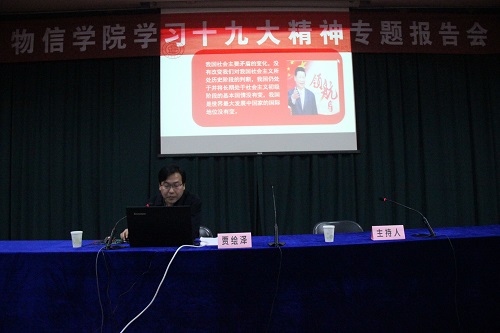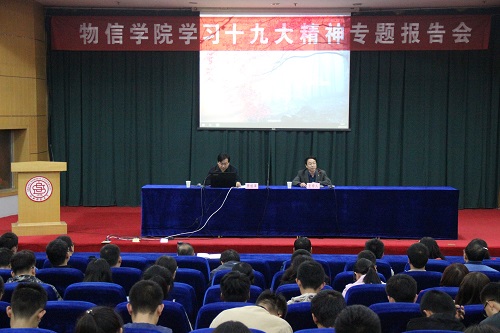 院长贾绘泽教授在科学会堂二层报告厅作了题为《中国特色社会主义新时代、新矛盾、新思想、新征程》的十九大精神专题报告,院长张进军、院党委副书记陈向波、副院长张东海、副院长侯俊华以及云顶Casino