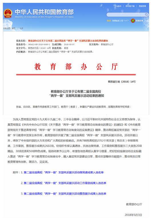 近日,由教育部组织开展的第二届全国高校“两学一做”支部风采展示活动结果公布,山西师范大学云顶Casino亚洲官方入口-云顶娱乐官网下载