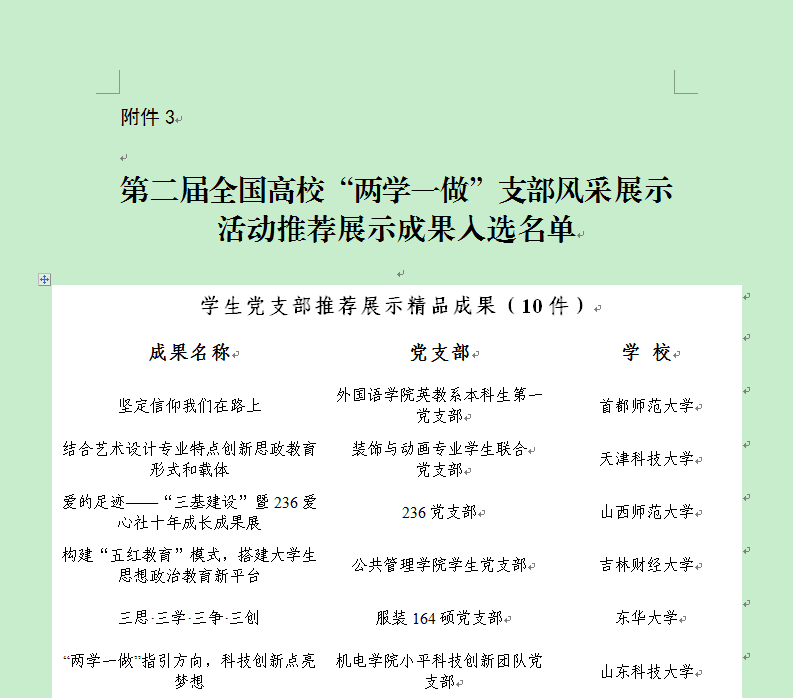 学生236党支部积极探索实践的“支部+社团”融合共建新模式成功入选,是我校“236党建品牌”走向“全国有名”的又一里程碑,也是继今年国家级知名主流刊物《人民日报》《中国教育报》长篇深度报道后,喜获国家级部委评选和面向全国推荐展示的又一次突破,同时,充分宣传展示了我校基层党建工作的先进经验和和创新举措。