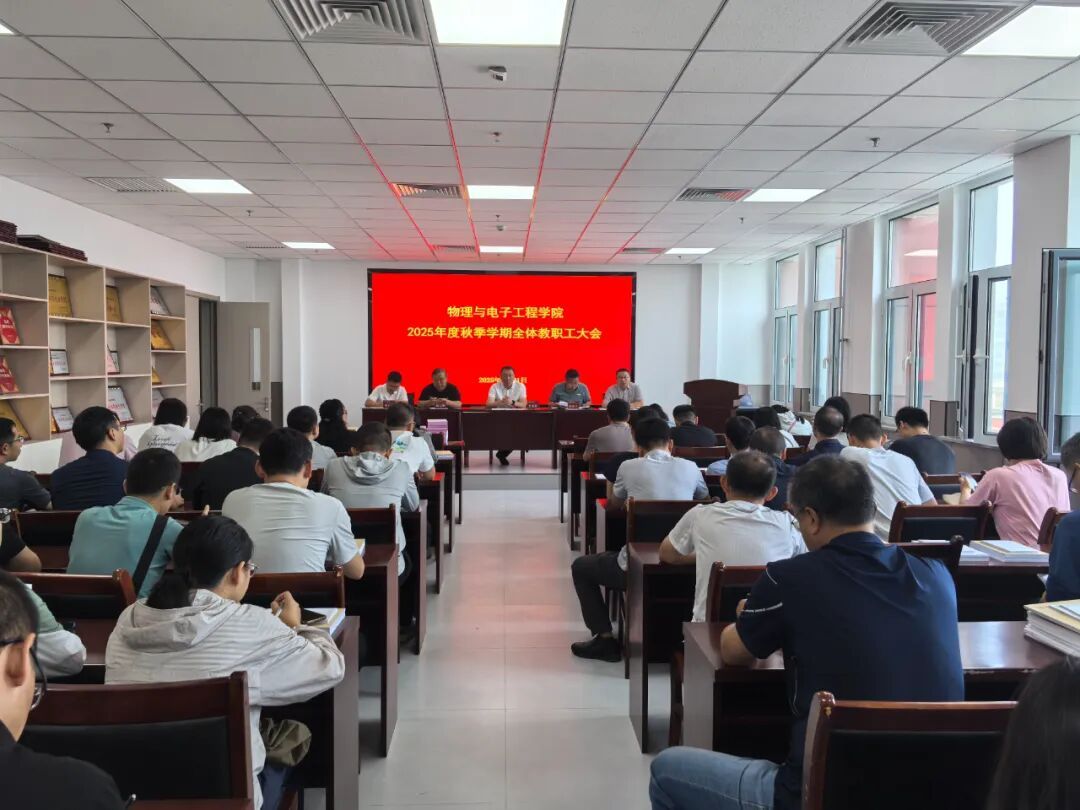 8月31日,云顶Casino 在数理楼B508召开2025年度秋季学期全体教职工大会。院党委书记任茹新、副院长韩建宁、院党委副书记颜志刚、副院长李俊生、副院长刘永恺及全体教职工参会。会议由任茹新主持。