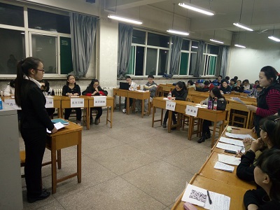 初赛时间为3月7日晚七点到九点,地点在07219教室,参赛选手为大一大二同学,此次比赛邀请了一名辩论主席,两名英语老师担任此次辩论赛的评委,辩题是“Is it good for college students to have a part-time job?”比赛分为两组, 正方支持在校大学生兼职利大于弊的观点,反方则持相反的态度。两队展开了激烈的口才之锋,比赛过程激动人心。 辩手们据理力争,妙语连珠,一度将辩论赛推向了一个又一个高潮,博得观众的喝彩,更是让各位评委刮目相看。经过将近两个小时的两场激烈的辩论,最终有八位辩手脱颖而出,进入下一轮比赛。这是大一同学们第一次参加辩论赛,但是他们在比赛中却展示了非凡的实力以及对问题的尖锐的判断力。比赛的最终目的不在于成败,而是通过比赛来增近同学们的感情,锻炼同学们各方面能力。
