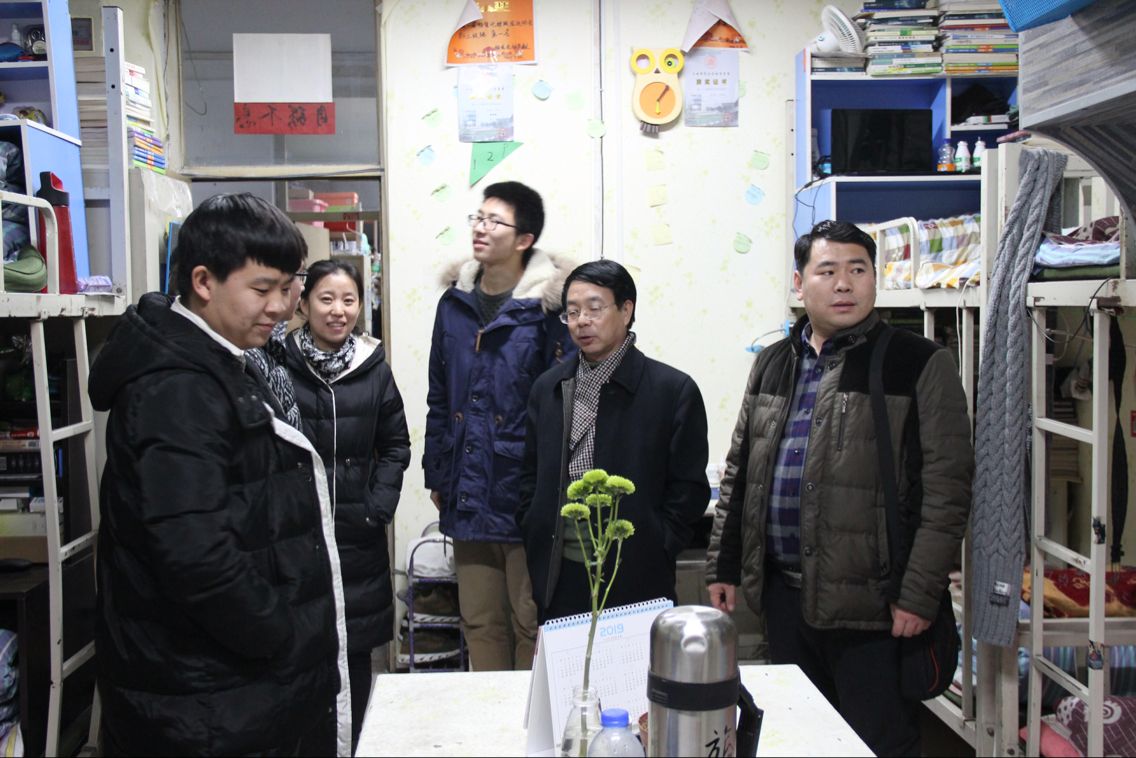 院领导与学生亲切交谈,仔细询问学生的生活环境和学习状况。希望同学们把宿舍当做自己的"小家",共同遵守宿舍管理规定,保持宿舍整洁卫生,保障人身财产安全,努力营造和谐的宿舍氛围。