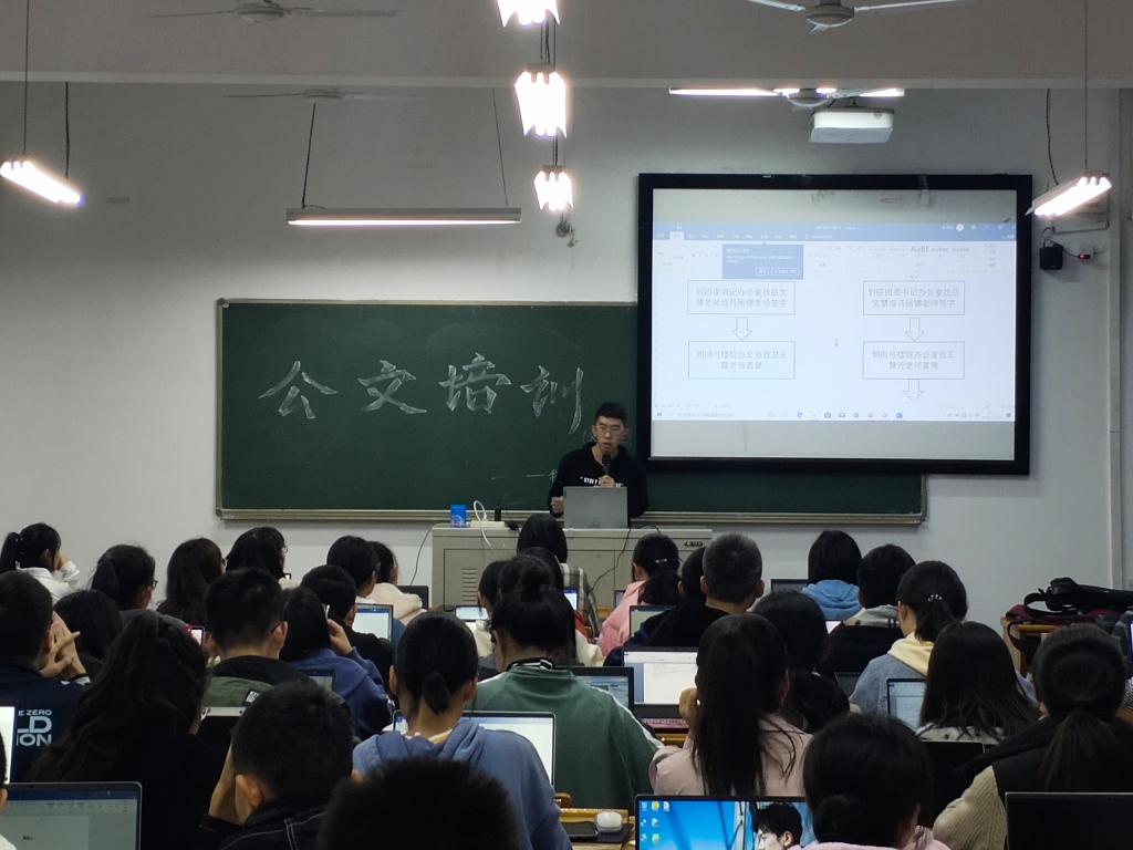 2019年11月10日晚7:00,由云顶Casino 团委学生会办公室、青协和新媒体举办的公文培训活动在07213教室进行。院学生会部分学生干部和全体大一干事参加了此次培训活动。活动由院学生会办公室干事张晓燕主持。