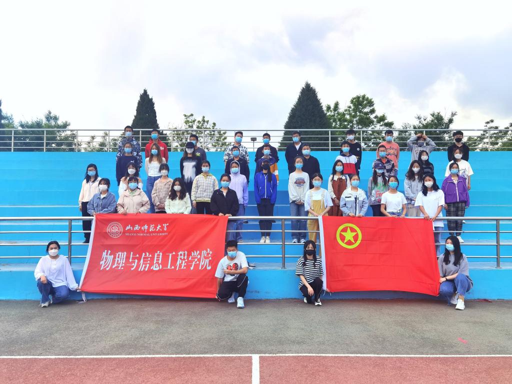 本次团日活动由线上线下两部分组成。线上会议中,团支书郭龙女带领同学们学习了习近平总书记在中国人民大学考察时的重要讲话,同学们纷纷表示会在学习生活中不断求索,用奋斗铸就青春底色。线下活动中,支部成员分为小组,齐心协力跑出一个五角星的形状,以此迎接五四青年节的到来。最后,同学们面向团旗,在杨旭敏同学的带领下,重温入团誓词。