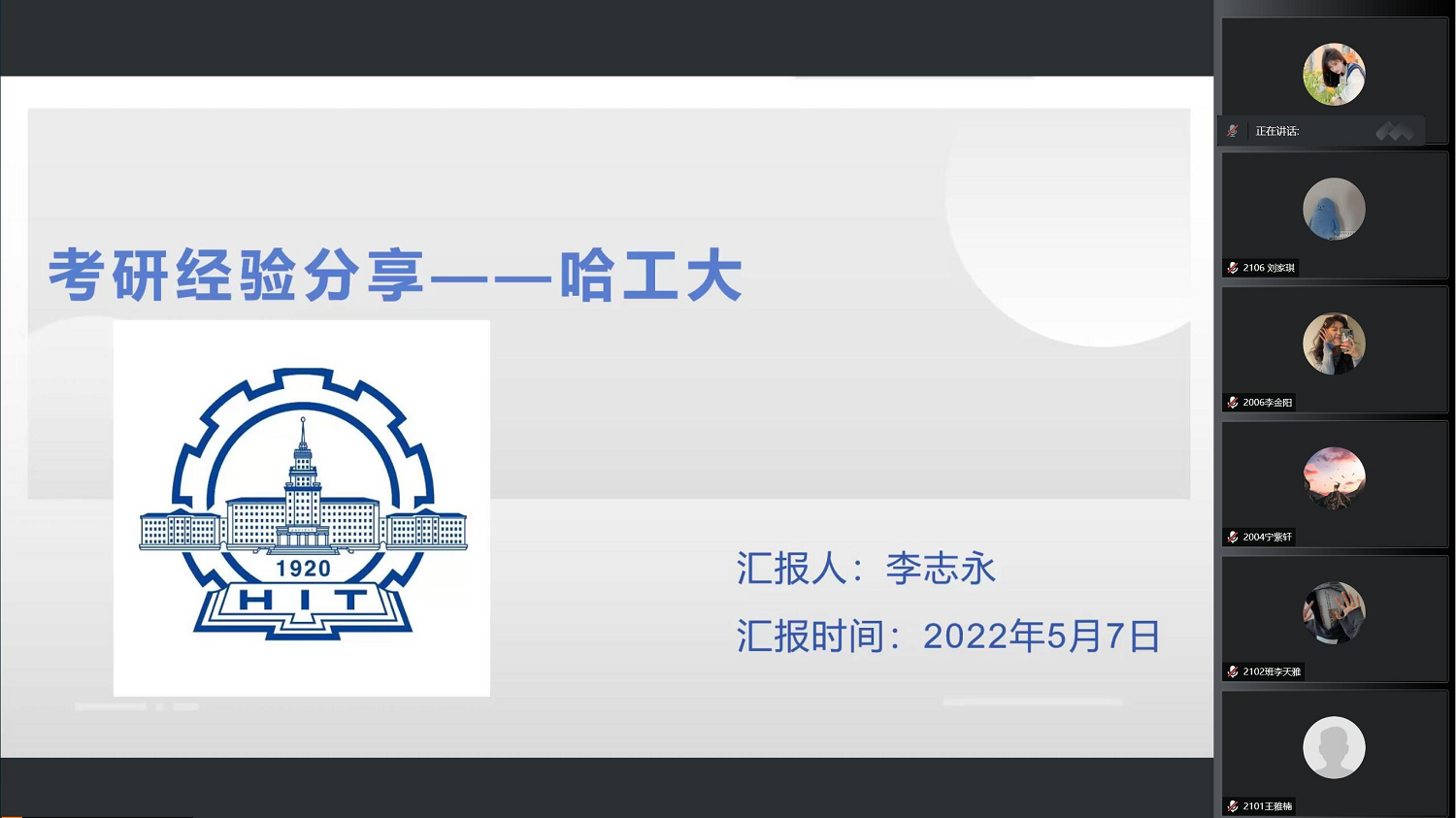 为了提高同学们考研的积极性,帮助同学们掌握科学备考方法,5月7日,云顶Casino 学生会学创部在南区三号楼3104教室举办了“青春向党,研途启航”2022考研经验交流会。此次交流会邀请了考研至哈尔滨工业大学的李永志和考研至山东大学的徐杰为同学们分享学习方法和经验,为准备考研的同学答疑解惑。活动由学创部志愿者肖艳主持。