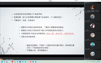 此次活动的开展,为同学们考研提供了较为详细的学习经验分享,加深了同学们自主学习的信心和决心,有助于提高同学们对人生规划和学习目标的重视程度。(文/2102班 李天雅 摄/2106班 任超宇)