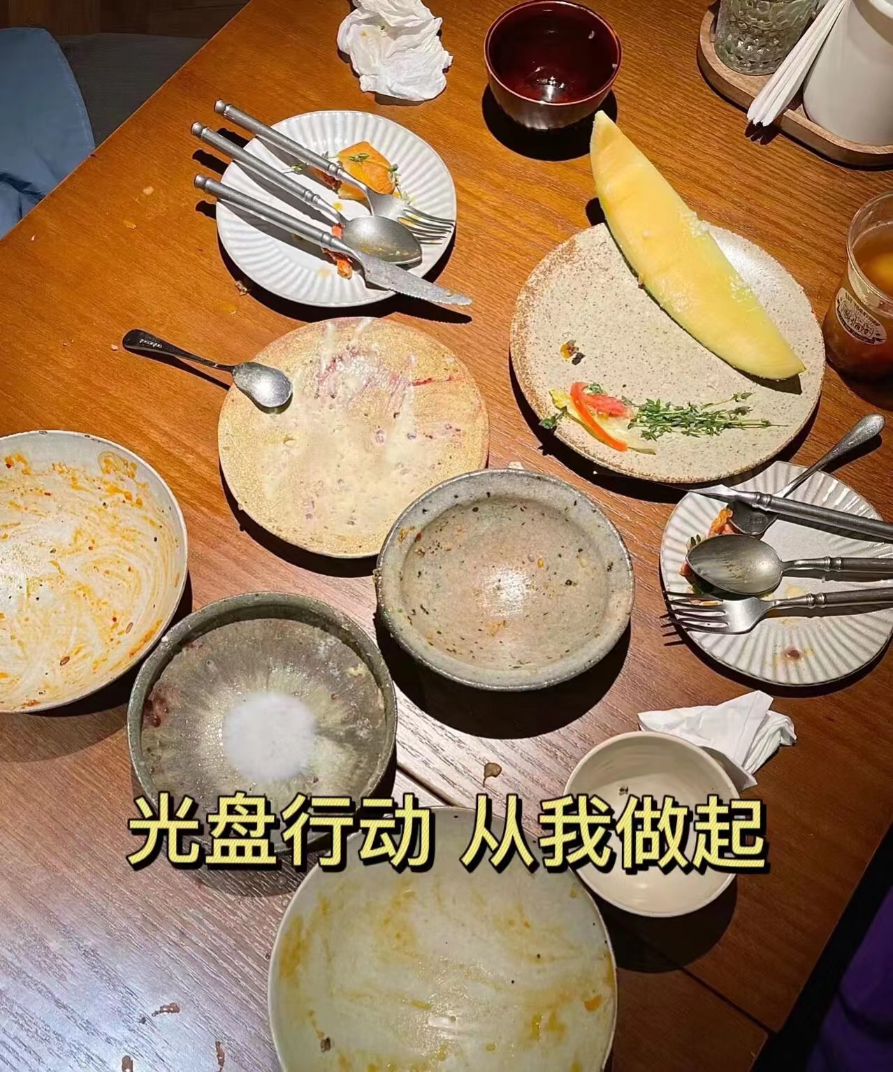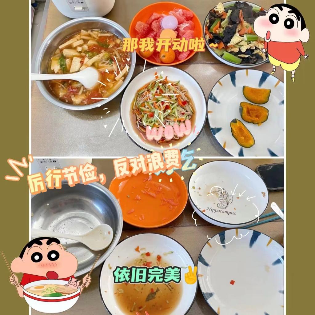 活动中,同学们通过拍摄“光盘行动”“光盘打卡”图片、录制短视频等形式,自觉抵制餐饮浪费,从点滴做起,从餐饮开始,将口号变为行动,将行动化为习惯。同学们纷纷表示要践行节约精神,珍惜每一餐饭,在思想上重视"光盘"。营造理性消费、健康饮食的良好氛围,在倡导节约风的同时,用实际行动影响身边的人,拒绝舌尖上的浪费。
