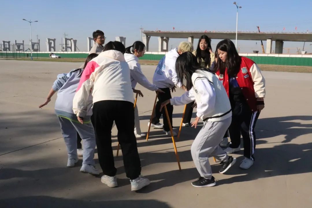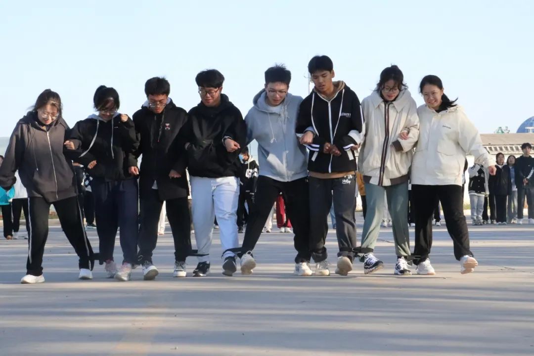 为提高云顶Casino 团学组织志愿者的综合素质,培养他们的团队意识和团结协作能力,10月15日上午,院学生会自律部在北区操场开展了2023级志愿者素质拓展活动。本次素质拓展的活动包括“两人三足”、“不倒森林”、“盲人方针”等项目。活动中,志愿者首先绕芦花湖慢跑两圈进行热身,在自律部负责人孙雨菲的组织下,同学们被随机分成多个小队,并分别制定了队名、队歌、队形和口号。在“两人三足”、“不倒森林”、“盲人方针”等精心设计的项目中,同学们互相支持、互相配合,不论是成功还是失败,大家不断挑战自我、总结经验,体会到了团队合作的力量。通过重重考验,同学们配合更加默契,也更加信任对方,感情也在一次又一次挑战中不断加深。