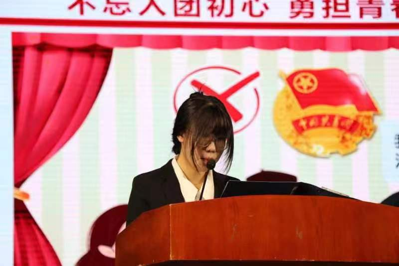 会上,同学们一共观看了庆祝中国共产主义青年团成立100周年宣传片《共青春》主题曲《有我》以及为迎接团十九大发布的宣传片《青春》两个视频。随后,新生团员代表王晓颖发言,她分享了作为团员青年应该有的责任和担当,以及加入共青团所带给她的成长和蜕变,并带领全体新生团员重温入团誓词,让共青团员的使命进一步深入人心。随后院团委办公室负责人段志颖介绍了团旗、团徽、团歌的通用规格和使用情形,讲述了团员享有的权利和应尽的义务,并希望大家牢记作为一名共青团员的责任和担当。