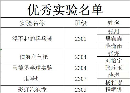附优秀实验名单:(文/2308班 张振宇 摄/2305班 贾妍)