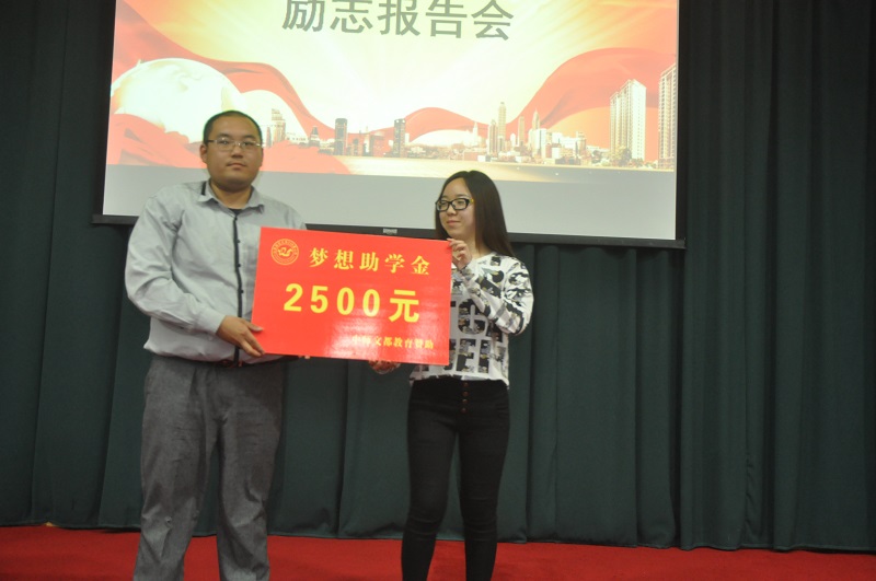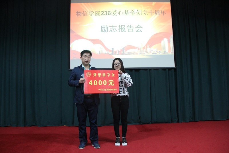 报告会上还举行了第五期“梦想助学金”捐助仪式,三家机构共捐助善款8500元。其中,中国公益在线临汾站捐赠4000元,并将持续捐助,直至捐助的学生考入大学。山东商会会长捐赠2000元,并将持续捐助,直至捐助的学生考入大学。文都考研机构一次性捐助2500元。