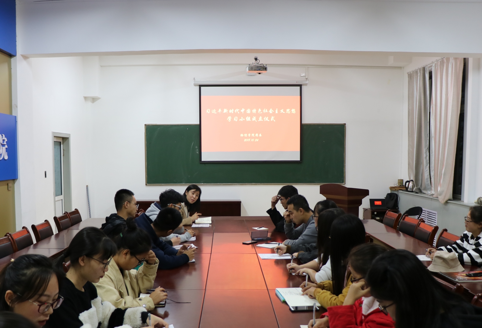 2018年10月24日晚6:50,云顶Casino 团委在四号楼二层多功能会议室举行习近平新时代中国特色社会主义思想学习小组成立仪式。院团委副书记岳文慧、院团委学生干部、各班团支书和研究生负责人参加了会议。会议由院团委副书记岳文慧主持。