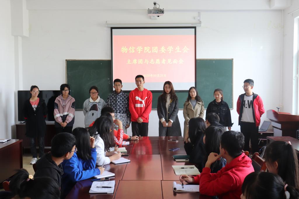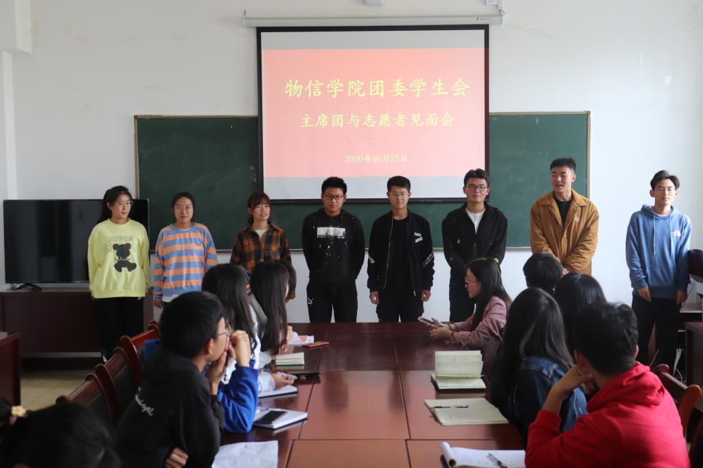 2020年10月25日中午12:00,院团委学生会在四号楼二层多功能会议室召开了主要学生干部与2020级新生志愿者见面会。见面会由院学生会执行主席尤天奇主持。