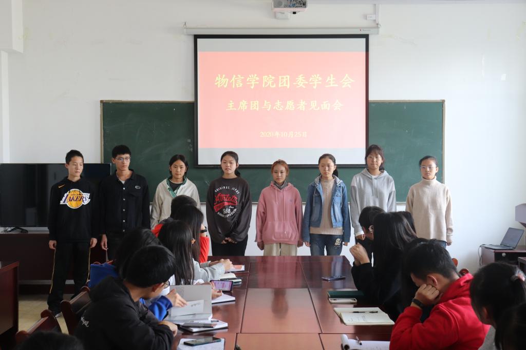 会上,主要学生干部从“学习、成长、努力、奋斗”几个方面与志愿者们进行分享,并就各部门的工作职能进行了详细介绍。随后,各部门志愿者依次进行了自我介绍,展示了自己的才艺和风采。