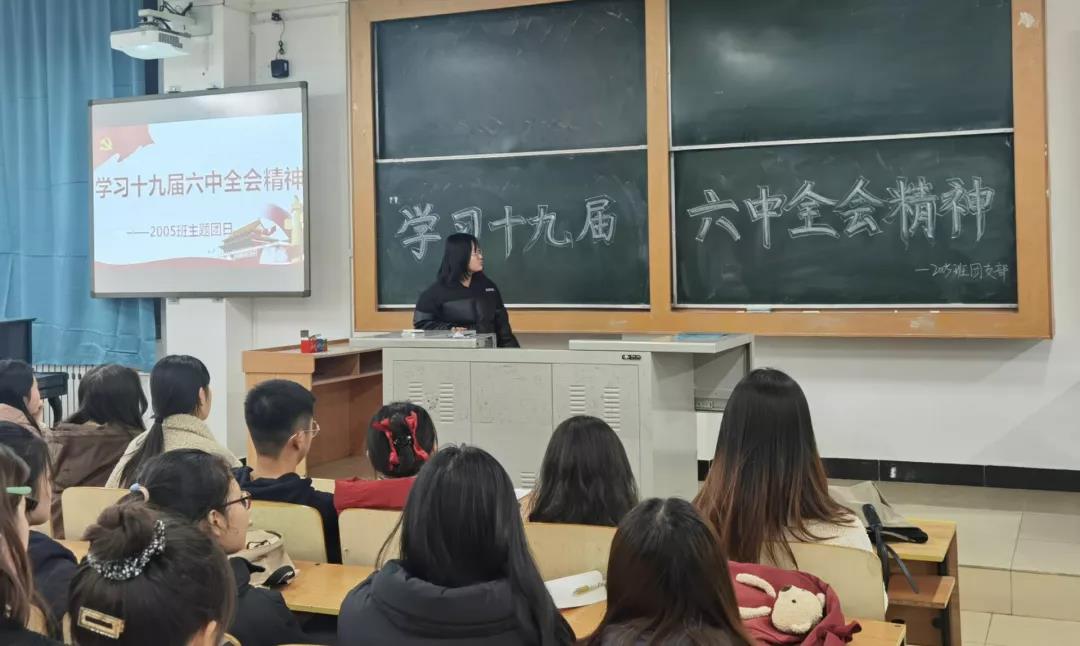 活动中,各班团支书结合PPT和视频带领同学们从会议时间、重要成果、重大意义等方面深入学习了十九届六中全会相关知识。通过学习,同学们了解到,党的十九届六中全会是在重要历史关头召开的一次具有重大历史意义的会议,作为当代大学生应该紧跟时代脉搏,深入学习贯彻会议精神。在交流讨论环节,支部成员积极发言,向大家分享了个人学习成果。2003班团支部成员贾瑞玲说道:“作为一名师范类专业学生,我们要不断学习、积极探索,努力提高个人知识水平,为实现中华民族的伟大复兴贡献青春力量。”2006班团支部成员付文心说道:“我们作为青年大学生,要立足当下,不忘初心、牢记使命、刻苦学习、踏实奋斗,担当起青年一代的历史使命。”
