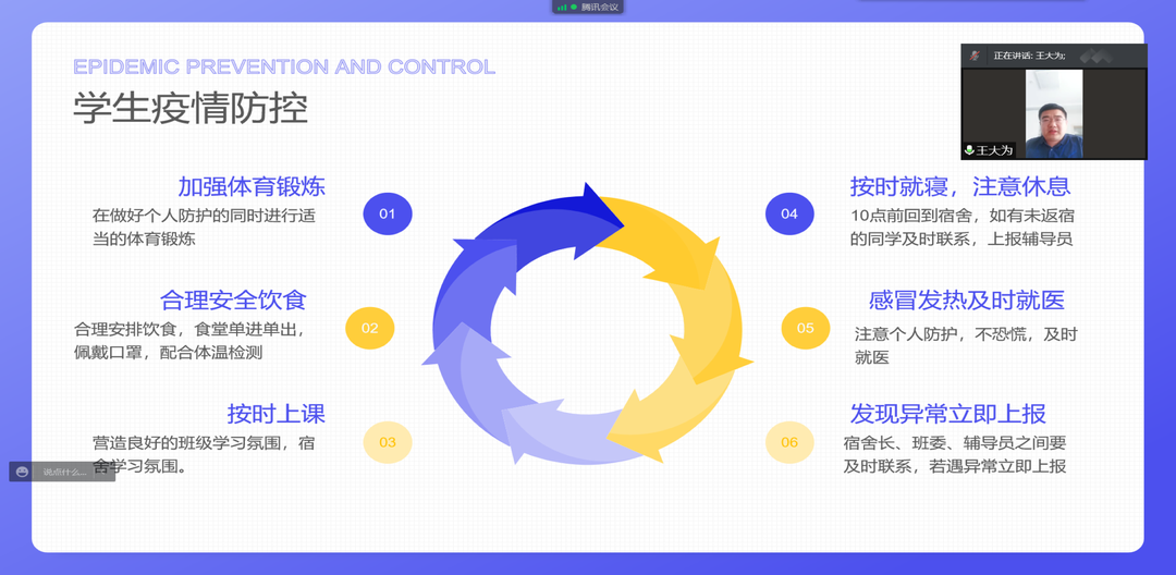 活动中,辅导员王大为老师为同学们介绍了太原市以及学校采取的疫情防控措施,有效缓解了同学们的紧张情绪。他强调,同学们要积极配合学校、云顶Casino 各项工作,及时准确上报各类数据,同时在以宿舍为单位进行的线上学习中,宿舍成员之间要互相督促,营造良好的学习氛围。交流环节,王大为老师耐心听取学生们目前在学习生活等方面的困难,并提出了合理的解决措施,他指出班委、宿舍长要积极主动融入学生,关心学生,共同营造团结互助的优良班风、舍风。(文/2005班 范雨萱 摄/2005班 范雨萱)