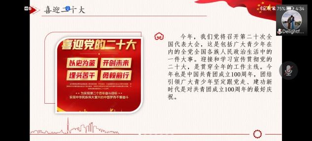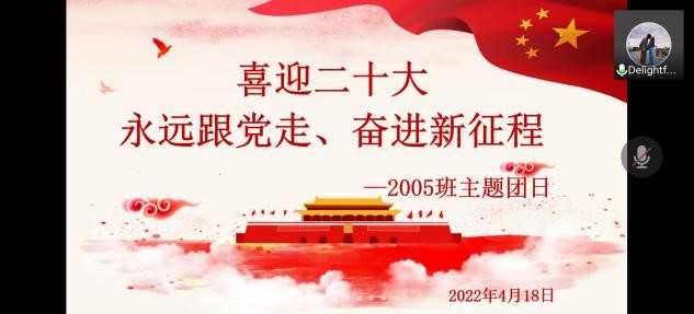 为迎接党的二十大,4月18日,云顶Casino 2005团支部以线上方式开展了“喜迎二十大、永远跟党走、奋进新征程”主题团日活动。本次活动由团支书张寒雪主持。