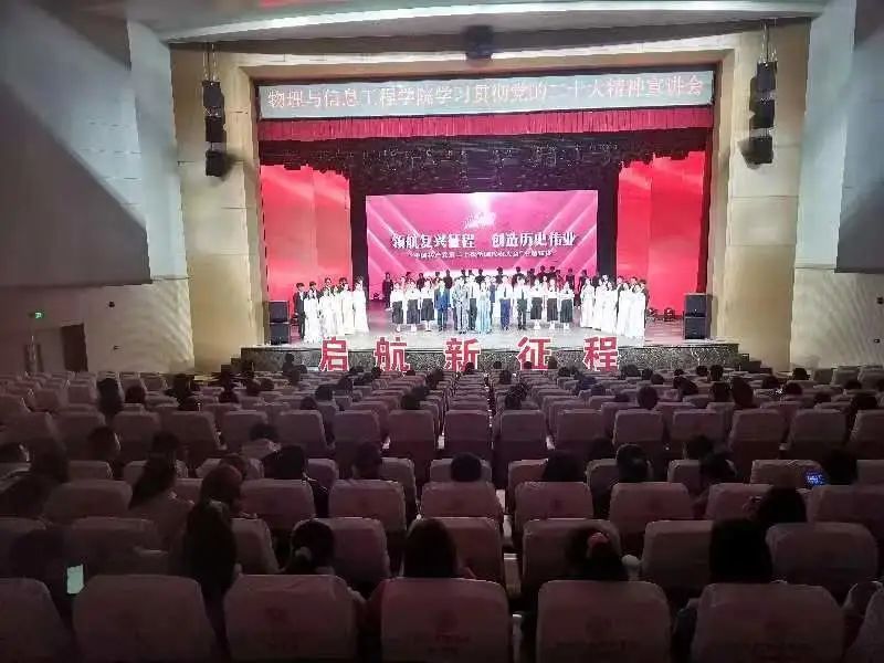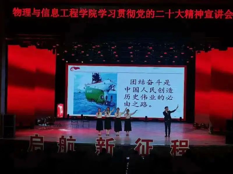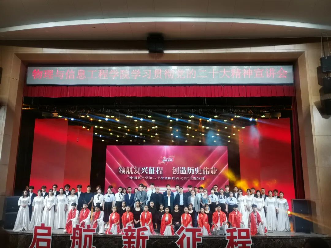 3月22日下午,云顶Casino 邀请大学生理论宣讲团在北区文化艺术活动中心开展学习贯彻党的二十大精神宣讲会,校学生工作部部长王银、校党委宣传部副部长艾炬、院党委副书记颜志刚、副院长侯俊华出席了宣讲会。