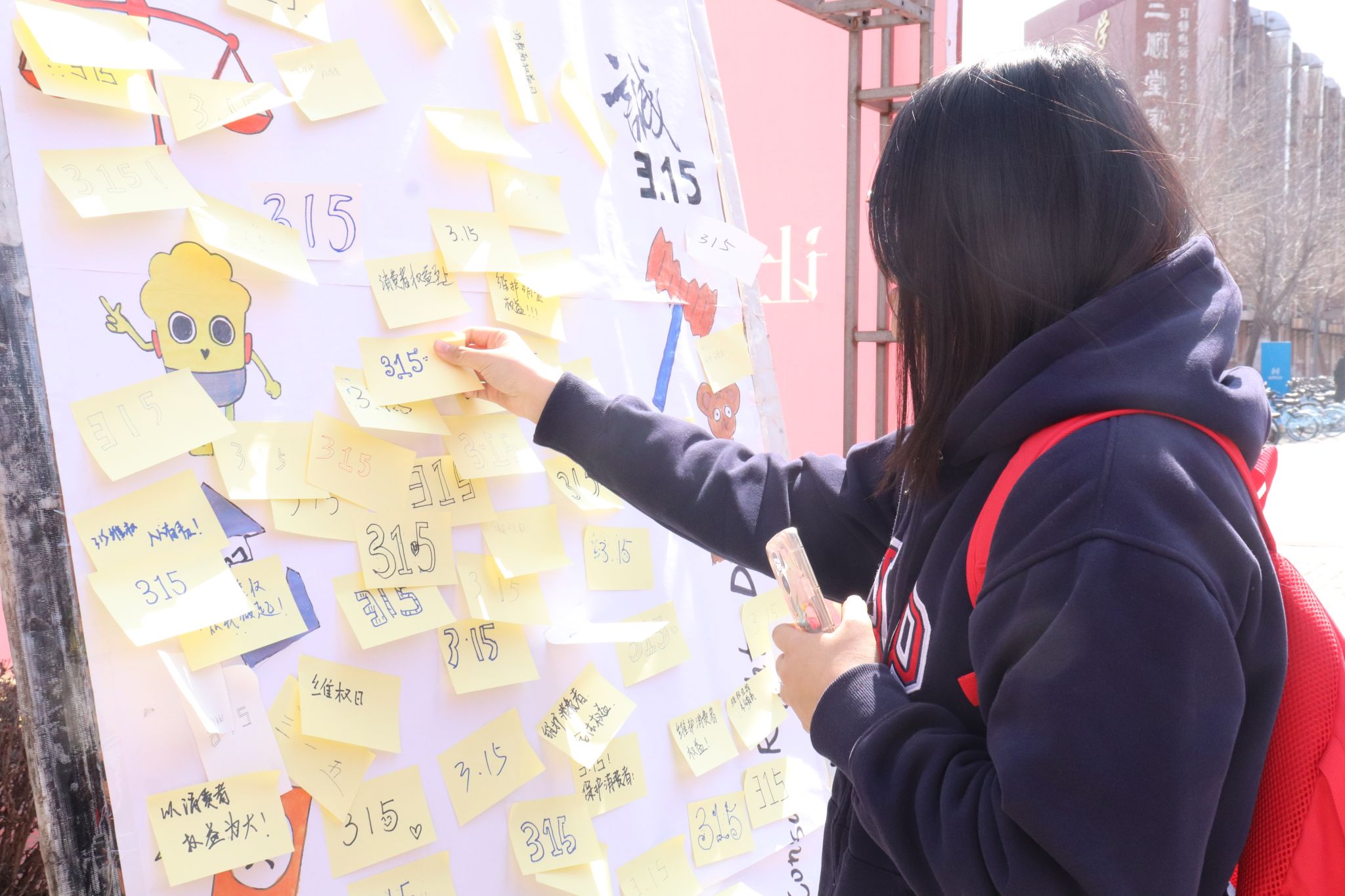 为迎接3·15 国际消费者权益日的到来,院自律部联合院新媒体美工组于3月15日在四五号教学楼之间开展“人生青春无价,消费维权有约”3·15国际消费者权益日宣传活动。