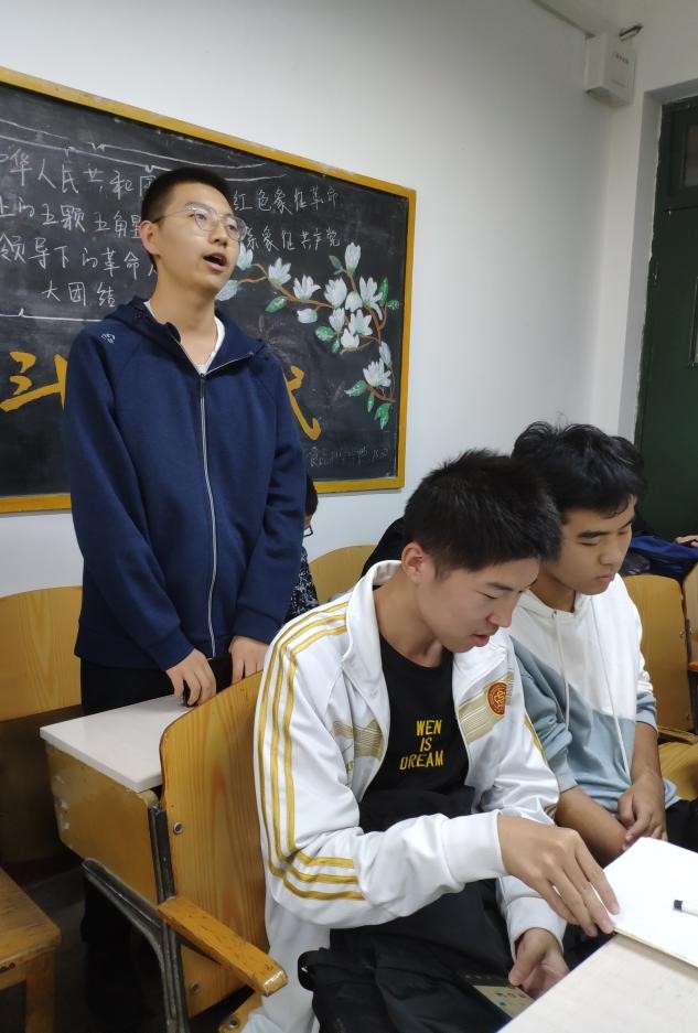 活动伊始,程晓敏为同学们讲述了中国共产党领导的伟大抗战历史,同大家一起回顾了那段艰辛而又伟大的革命历程。互动讨论环节,同学们积极分享自己知道的革命先烈事迹。一个个热血激昂的红色故事、一位位舍家为国的革命烈士激起了同学们浓浓的爱国情。