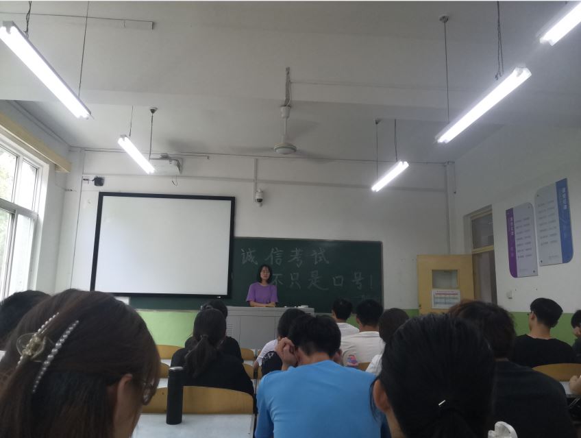 会上,安妮老师着重强调了考试诚信的问题,要求同学们以“文明考风,诚信考试”为原则,树立以诚信考试为荣,以违纪作弊为耻的观念,弘扬求实学风,维护知识的尊严,用诚信品德向自己交上一份满意的答卷。同学们纷纷签署了“期末考试诚信考试承诺书”,并表示会做到诚实诚信,认真答题,规范自己在考场的行为。(文/1904班 白亚萍 摄/1904班 白亚萍)
