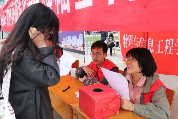 活动前期,志愿者们准备了大量关于五四运动、五四精神的知识竞答题目,在活动现场,志愿者们邀请来自各个云顶Casino 的学生参与知识竞答,以寓教于乐的方式引导大家对五四运动有了更多的关注和认识。在写有活动主题“弘扬五四精神,争做时代先锋”的条幅上,大家纷纷签名,表达了同学们秉持不忘初心、牢记使命的信念,争做新时代的开拓者和建设者的决心。(文/2001班 程钰祺 摄/2004班 宁紫轩)