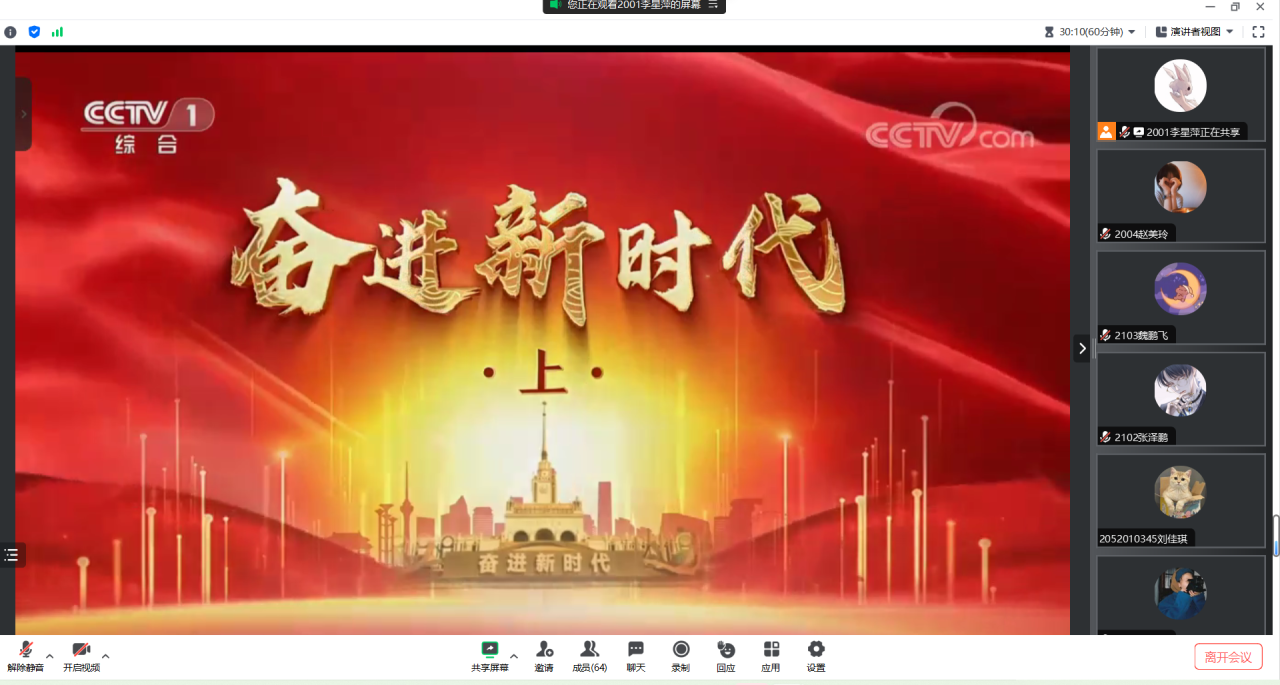 会上,支部全体党员仔细观察图片,认真观看视频,依次参观了“奋进新时代”主题成就展网上展馆的各展区。展厅里,一件件三维模型、一段段生动视频、一幅幅图片图表,角度丰富,内涵饱满,既展现了事业发展的新局新貌,又揭示了变革背后的力量和动能;既展现了新时代中国共产党人的政治引领、思想指引,又反映了广大人民群众团结一心、干事创业的良好风貌。支部党员在沉浸式观展的过程中,身临其境地感受到党的十八大以来,以习近平同志为核心的党中央带领全党全军全国各族人民团结奋斗的历史进程和取得的标志性成就。支部党员以党小组为单位围绕参观进行了小组研讨,大家一致为我国取得的伟大成就感到无比地自豪与骄傲,并表示将继续坚持习近平新时代中国特色社会主义思想的科学指引,以更加强大的前进动力、更加昂扬的奋斗精神、更加坚定的必胜信念,为推进中国式现代化作出新的更大贡献。(文/2001班 季泽琳 摄/2004班 赵美玲 )