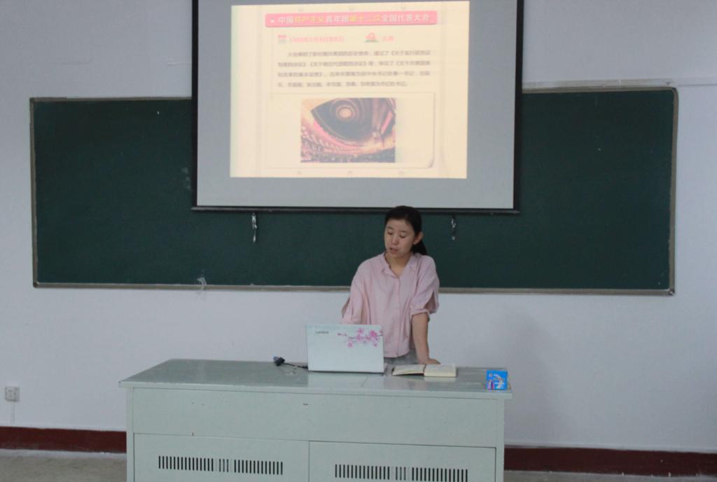 会上岳老师带领大家回顾了1922年至今举办的历届团代会,了解了共青团发展历程中各次团代会做出的重要决议,重点学习了第十七次团代会提出的“为实现中国梦而奋斗是中国青年运动的时代主题”。她说,习近平总书记非常关心青年学生的成长成才,对当代青少年寄予的殷切期望。岳老师鼓励大家要成为有理想、有担当的青年,同时还要努力奋斗、顽强拼搏,为社会发展做出贡献,给自己的人生留下充实的回忆。
