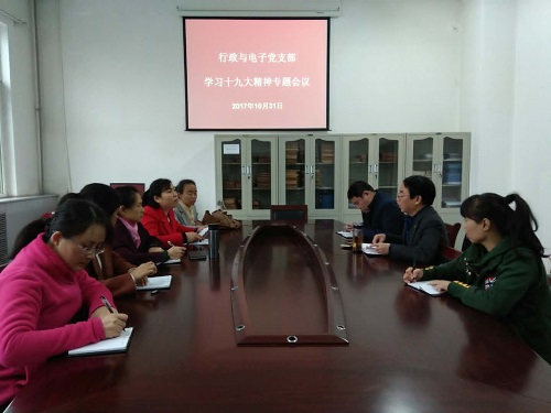 行政与电子教工党支部在二层会议室召开“学习十九大精神专题会议”,支部全体党员参加了会议,会议由支部书记卫永霞主持。