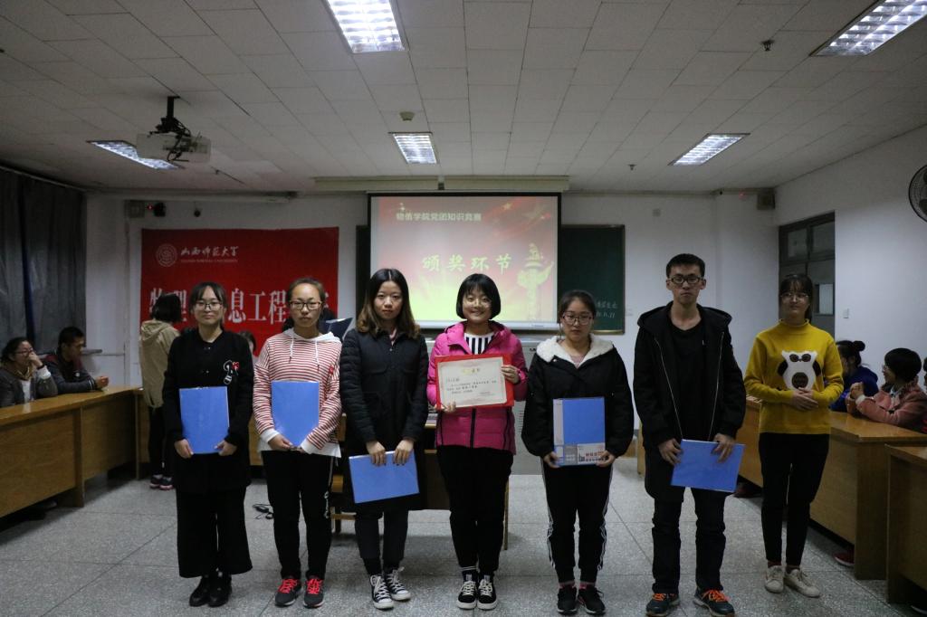 2018年11月17日晚7:30,云顶Casino 团委于12108教室举办“牢记党团历史,传承党团光荣”党团知识竞赛。此次竞赛由大一各班选派的五名代表参加,由学生干部高羚、温佳担任评委。