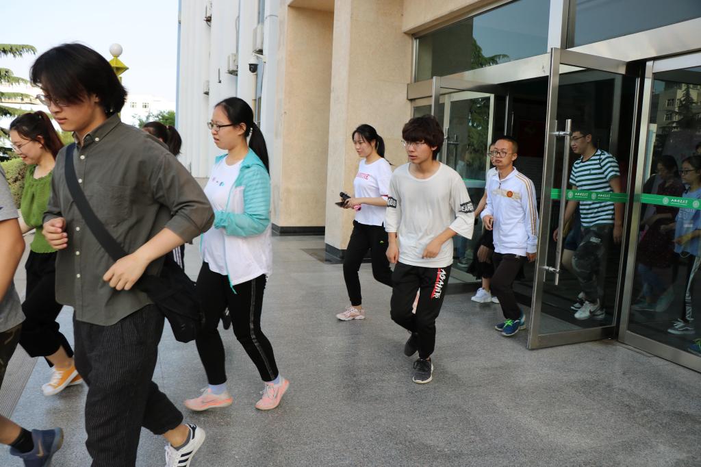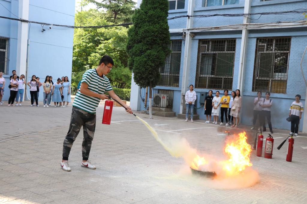 讲座结束后,院党委副书记王玮和专职辅导员马丽娜在校保卫处的配合指导下组织大一至大三年级的部分班级进行了应急疏散和灭火演练。随着警报声响起,分布在四号教学楼教室和实验室的同学们迅速组织撤离,按照事先学习的疏散要求,快速有序地前往巨人广场安全集合区域,清点人数,整个过程井然有序。两次演练后,院党委副书记王玮结合演练过程进行了点评,强调同学们面对突发情况要沉着冷静应对,以确保人身安全为第一位,党员、学生干部要在危急时刻保持冷静头脑、保持先进本色,肩负责任、指挥到位!在灭火演练中,保卫处消防科张科长向学生们进行了消防知识现场教学,详细讲解了不同类型灭火器的使用方法,并现场进行演示,还邀请了部分同学进行了灭火体验。