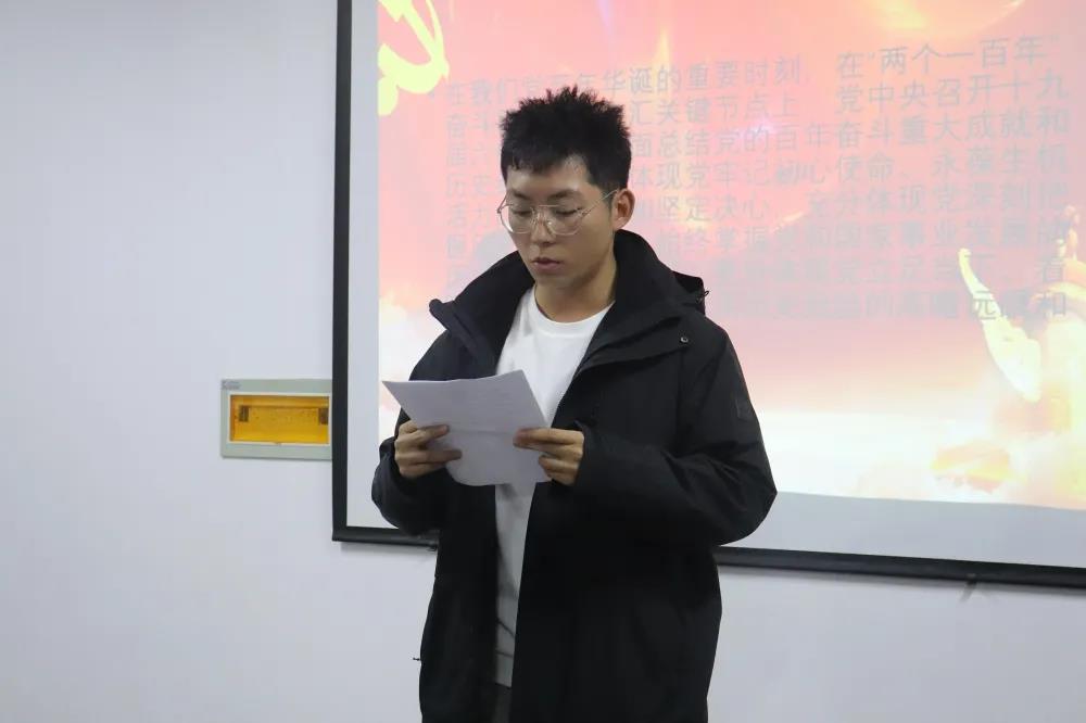 活动中,同学们结合PPT和视频,以“回望百年,奋发今朝”为主题进行朗诵,或回顾百年历史,或展望辉煌未来。在悠扬的配乐与振奋人心的视频背景下,参赛选手以饱满的热情讲述了中国共产党发展历程中的重大事件,生动再现了中国共产党团结带领全国各族人民艰苦奋斗,取得的伟大成就和宝贵经验。朗诵环节结束后,评委对同学们的表现进行了点评。他们在肯定同学们优秀表现的同时也针对比赛过程中暴露的问题提出了三点意见:一是要加强对稿件的熟练度,确保在赛场上的表现流畅自然;二是要充分利用肢体语言,大方得体地表达出自己的情感;三是PPT与背景音乐的选择要恰当,从而起到烘托氛围的效果。