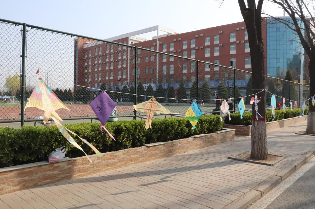 活动中,同学们搜集身边可以重复利用的废旧物品,经过切割、裁剪组装、粘贴等程序,制作出了一个又一个精美的风筝。他们在风筝上书写寄语、绘制图案,寄托对先烈的缅怀、对亲人的思念、对抗疫必胜的决心和对未来的美好期许。4月4日上午,采编组于行知路旁举办了风筝展,路过的同学们纷纷驻足观看,并与风筝合影,聆听了风筝制作者对风筝的解读后,同学们纷纷表示,每一个风筝的背后,都蕴藏着作者对美好生活的期望和祝福,相信疫情终会散去,理想也必将实现。采编组还邀请到2004班全体同学前来参与放飞风筝活动,大家将一个个风筝放飞到天空,带去了思念、祝福与期望,带走了烦恼、阴霾与病痛。