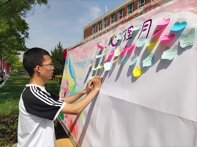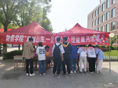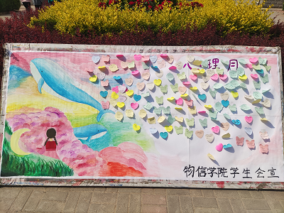 为提高同学们的心理素质,提高自我关注认识意识,云顶Casino 学生会办公室于5月19日-5月21号在南区六号教学楼前举办了“爱越山海,一见青心”心理健康月活动。