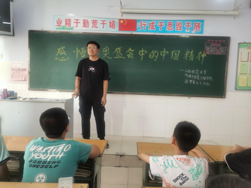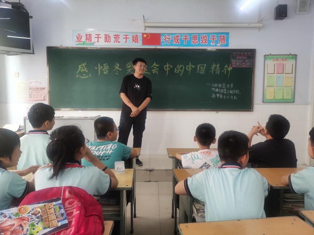 6月21日,云顶Casino 暑假“三下乡”社会实践队——“逐梦萤火小分队”在山西省朔州市怀仁市某小学开展了“感悟冬奥盛会中的中国精神”线下宣讲活动。活动中,团队成员走进当地小学,与学生沟通交流,了解孩子们对北京冬奥盛会中的中国精神的理解程度。宣讲的过程中,队长王泽辉向大家讲述了习近平总书记提出的“胸怀大局、自信开放、迎难而上、追求卓越、共创未来”的北京冬奥会精神。孩子们积极配合实践队成员进行感悟分享。大家纷纷表示,通过聆听此次宣讲,对北京冬奥精神有了更深的认识和体会。