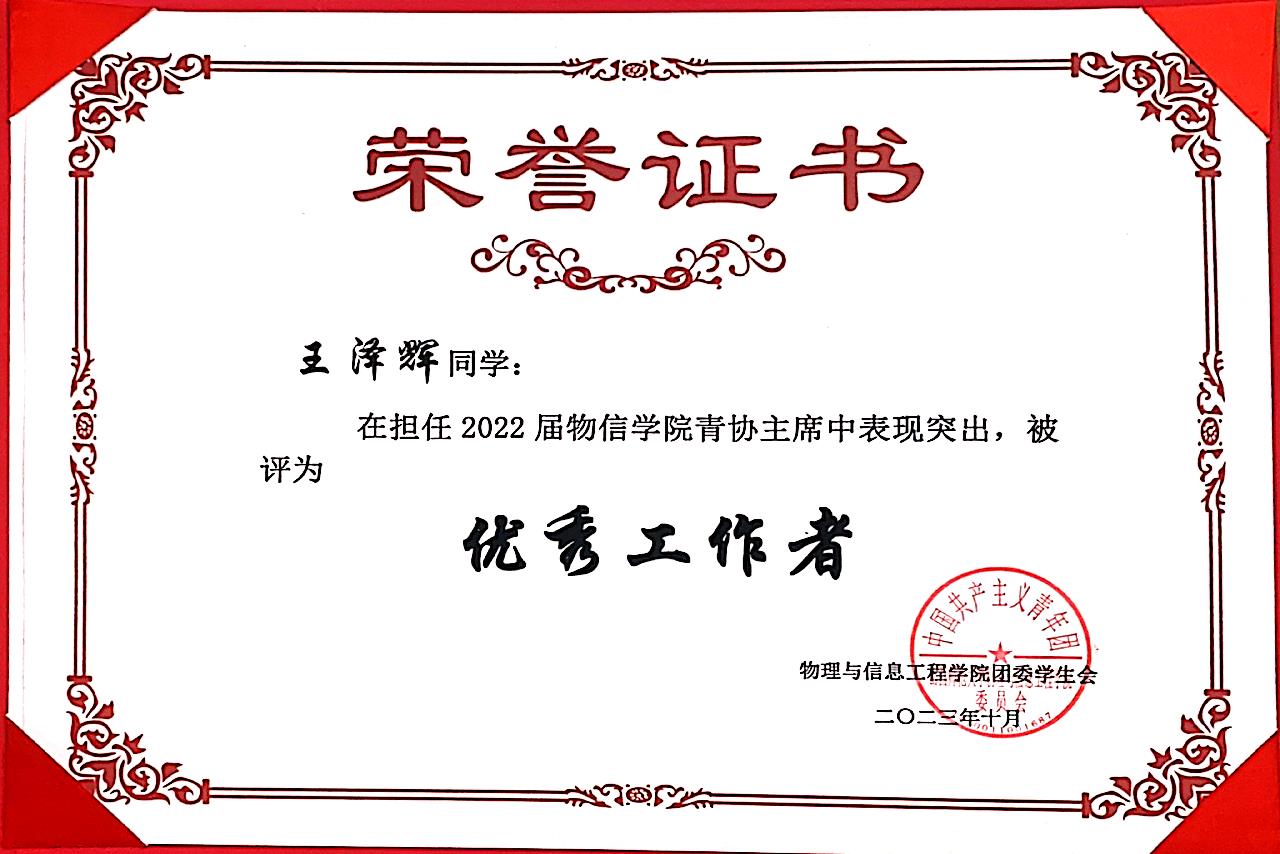 2022学年学生会优秀工作者