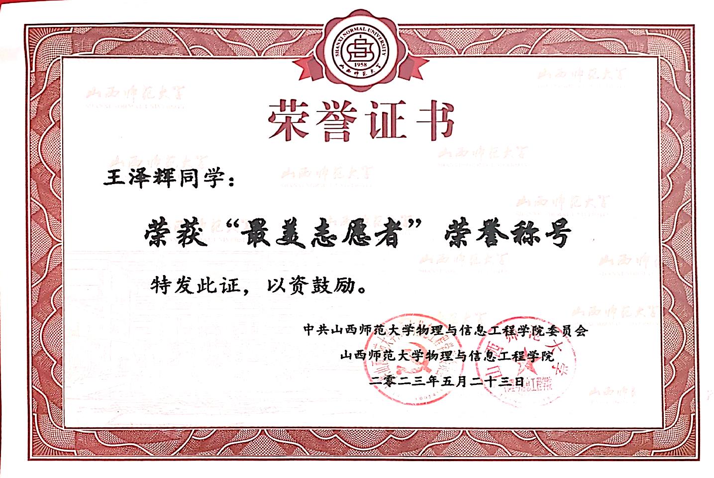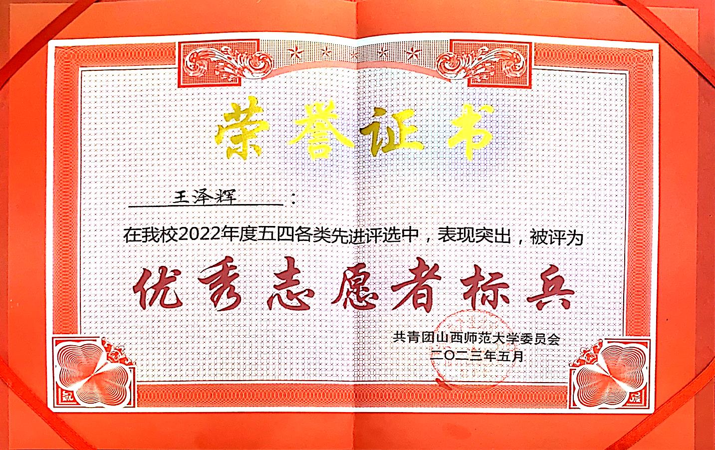 2023学年五四评优优秀志愿者标兵