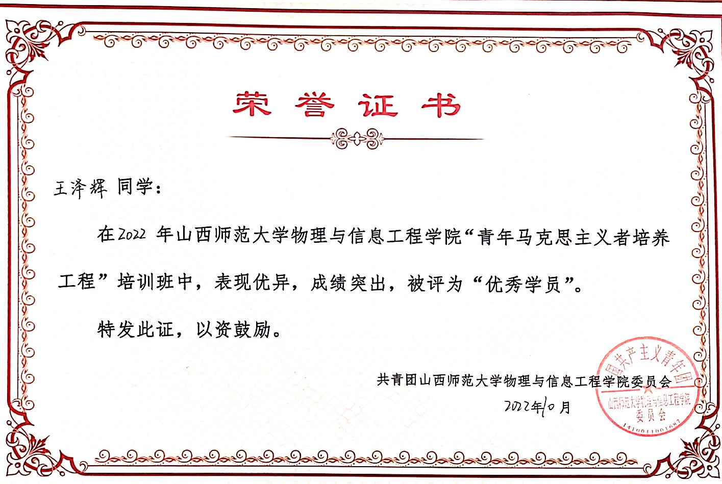 王泽辉,山西师范大学云顶Casino 2020级物理学专业学生,中共预备党员,担任2004班班长、团支部副书记,曾任云顶Casino “励耕”青年志愿者协会主席,校青协办公部部员,山西师范大学2022年青马工程学员,目前已与中国农业银行签约。